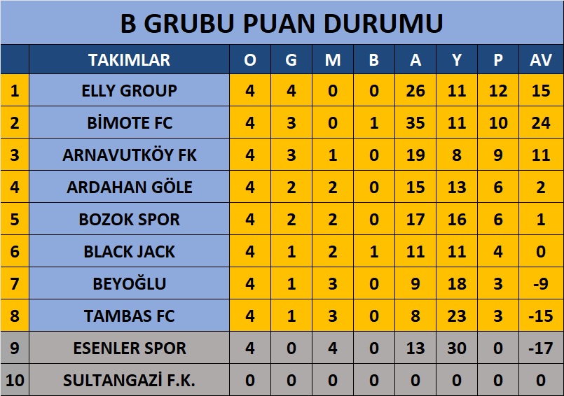 YENİDEN DİRİLİŞ TAKIMI TURNUVAMIZDAN ÇEKİLME KARARI ALDI... MERHABA SULTANGAZİ F.K ![]() YENİDEN DİRİLİŞ TAKIMI TURNUVAMIZDAN ÇEKİLME KARARI ALDI... MERHABA SULTANGAZİ F.K YENİDEN DİRİLİŞ takımı kendilerine özel belirli nedenlerden dolayı turnuvamızdan çekilme kararı aldı ve sonrasında kurallarımız gereği ''yedek takım dahil edilebilir'' durumu devreye girdi. Öncelikle Fatih KIZILYAR ve İbrahim KIZILYAR a turnuvamıza verdıkleri katkılardan dolayı çok teşekkür ederiz. Geçen turnuva EN CENTİLMEN TAKIM ödülü ile bizlerde ayrı bir yer edindiler. Bu turnuvada yine en centilmen takım adayıydılar. TESEKKURLER . Turnuvamızın yeni takımı SULTANGAZİ F.K turnuvamıza dahil oldu. SULTANGAZİ F.K takımı nasıl bir kadro ile turnuvamıza girecek resmen kapalı kutu. Kaptan HAKAN ALTINAY önderliğinde genç ve birlikte oynamış oyunculardan kurulu bir kadro olduklarını tahmin ediyoruz. Kendilerine başarılar diliyoruz. Kurallarımız gereği SULTANGAZİ F.K takımı sıfır puan ve sıfır averaj ile turnuvamıza bu pazar günü başlayacaktır. Turnuva sonunda geçmişteki dört maçtan sadece ikili ve üçlü averajlarda sorumlu tutulacaktır. (4 maçın skorundan sanki kendisi oynamış gibi sorumludur) Bu kurallarımız yedek takımlar turnuvamıza alınmadan onlar ile görüşülüyor ve puan durumu, gelecek maçlar ile bilgiler aktarılıyor. Uzun süredir bu kurallarımızla yedek takımları turnuvamıza dahil ediyoruz. Tüm takımlara başarılar dileriz. İşte Son Puan Durumu :