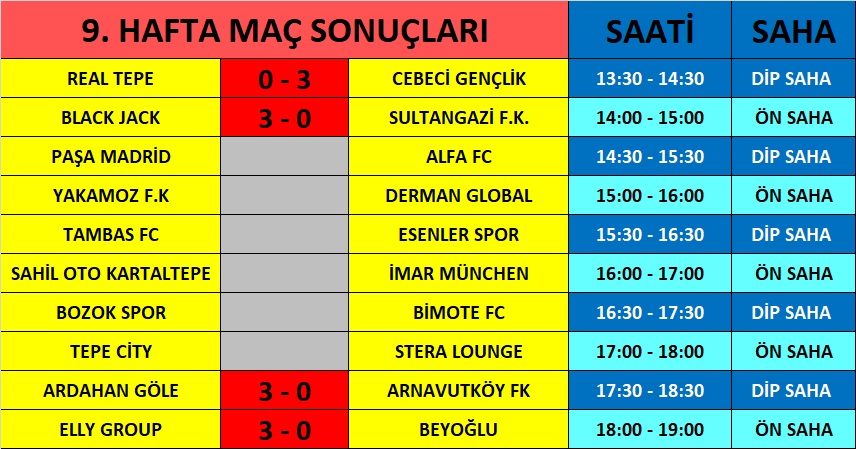 STERA LOUNGE CAFE / EBU MEDYA FUTBOL TURNUVASI 9. HAFTA MAÇ SAATLERİ YAYINDA.