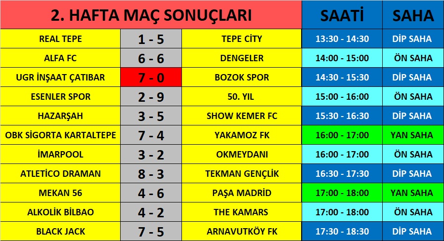 2.HAFTA MAÇ SAATLERİ VE LİG FİKSTÜRÜ YAYINDA. |