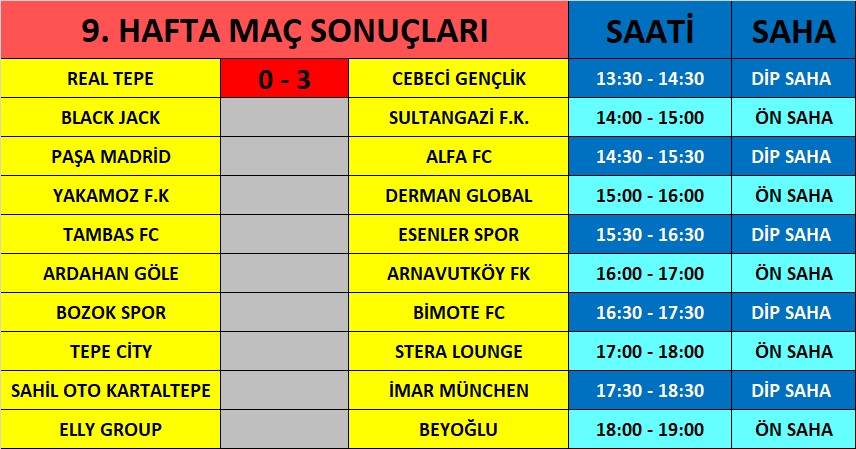STERA LOUNGE CAFE / EBU MEDYA FUTBOL TURNUVASI 9. HAFTA MAÇ SAATLERİ YAYINDA.