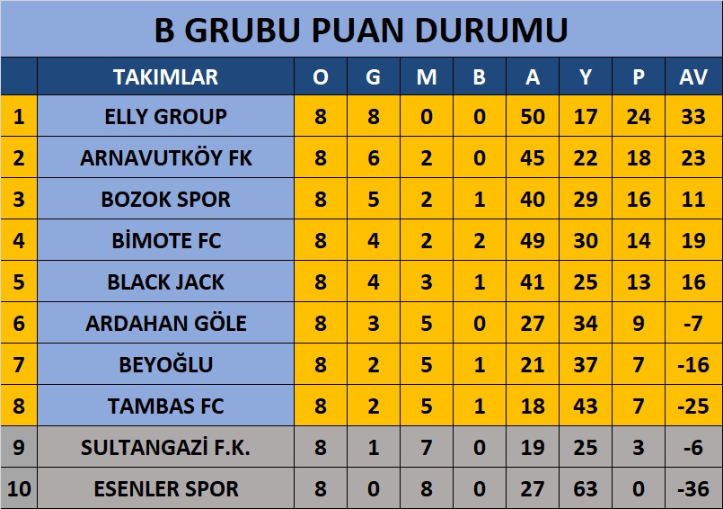 B GRUBU TAKIMLARI