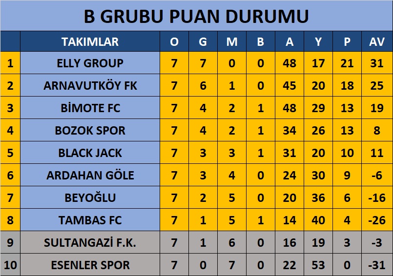 B GRUBU TAKIMLARI